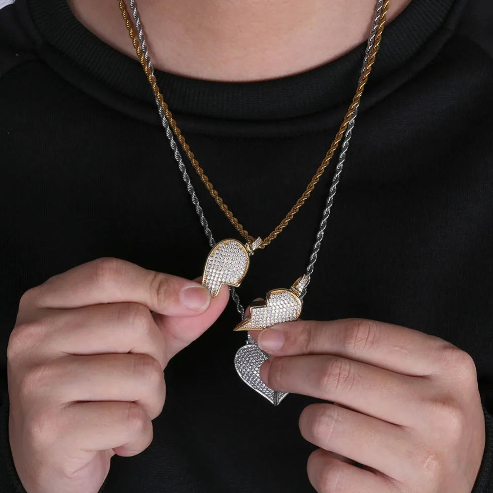 Introducing our Magnetic Love Pendant – a unisex statement piece available in Gold and Silver. This unique design features a heart that can be separated into two halves, making it a perfect symbol for couples, friends, siblings, and those you love most. When reunited with your other half, effortlessly connect the two pieces with the magnet.To maintain its shine and intricate detailing, avoid exposure to water and harsh chemicals. Store it in a cool, dry place when not worn to preserve its beauty and ensure it remains a standout piece in your collection.