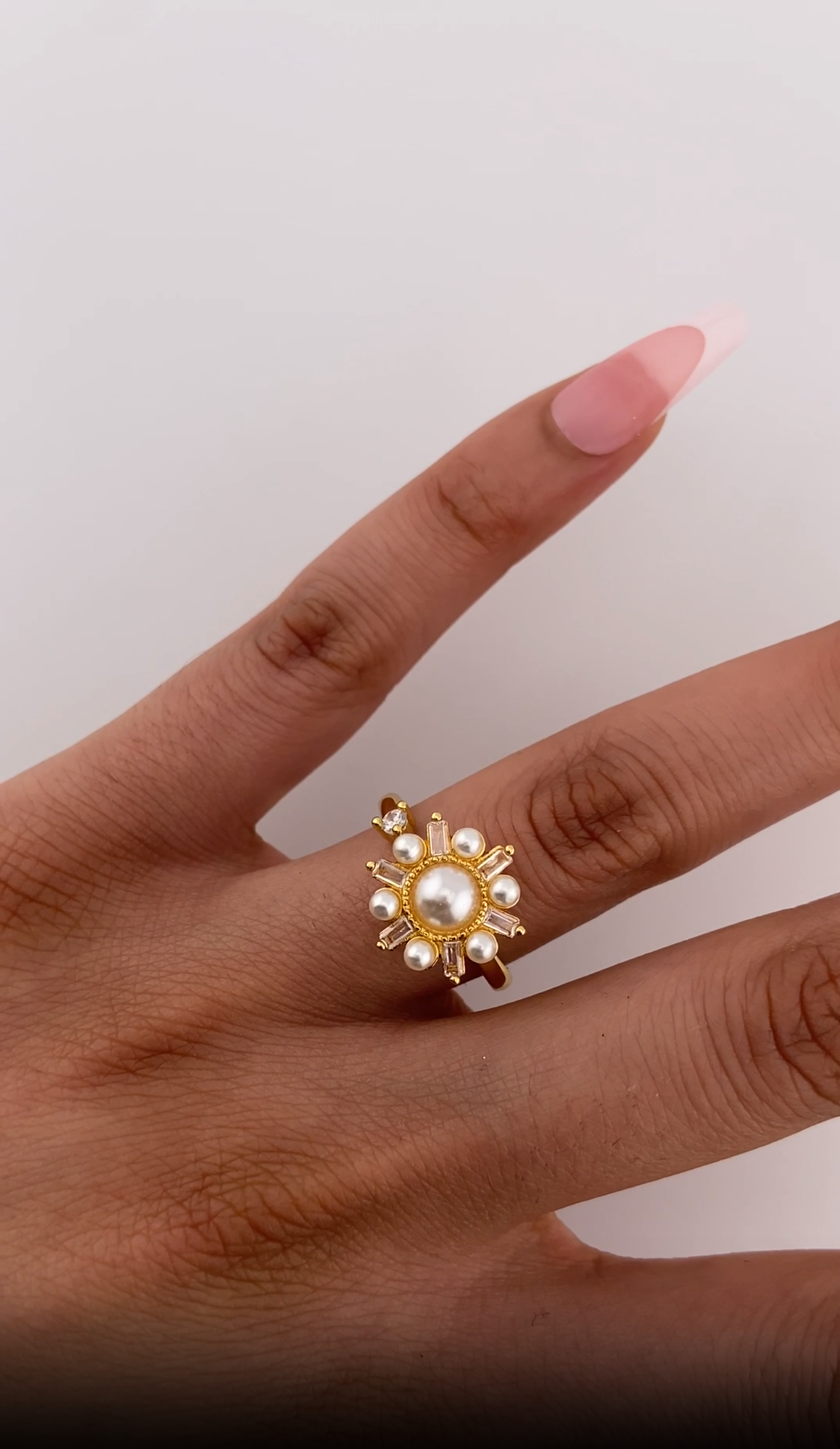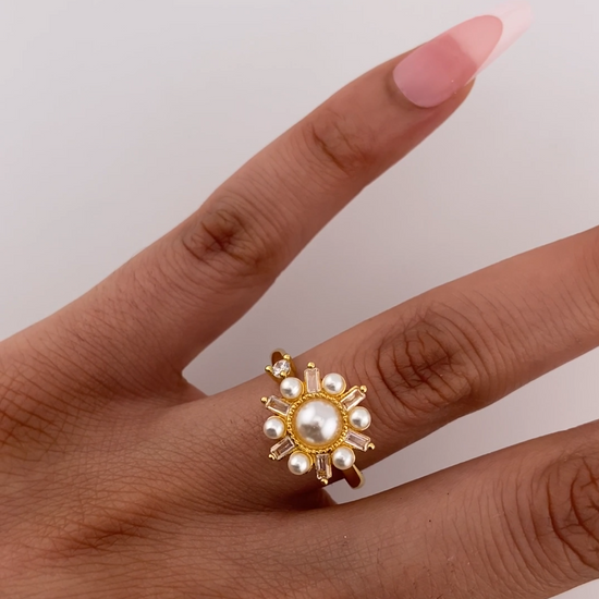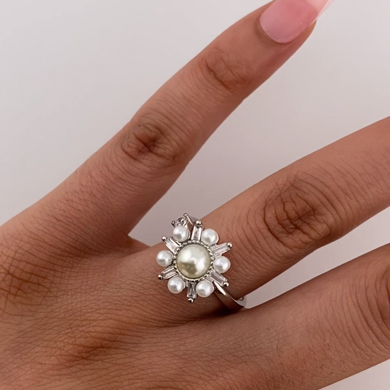 Introducing our Pearl Flower Ring – a delicate piece, offered in Gold and Silver variants, that embodies elegance with its floral design adorned with lustrous pearls. This ring exudes timeless beauty and sophistication, perfect for complementing both casual and formal attire. To maintain its pristine luster, handle it with care, avoid contact with water and harsh chemicals, and store in a dry, cool place when not being worn.