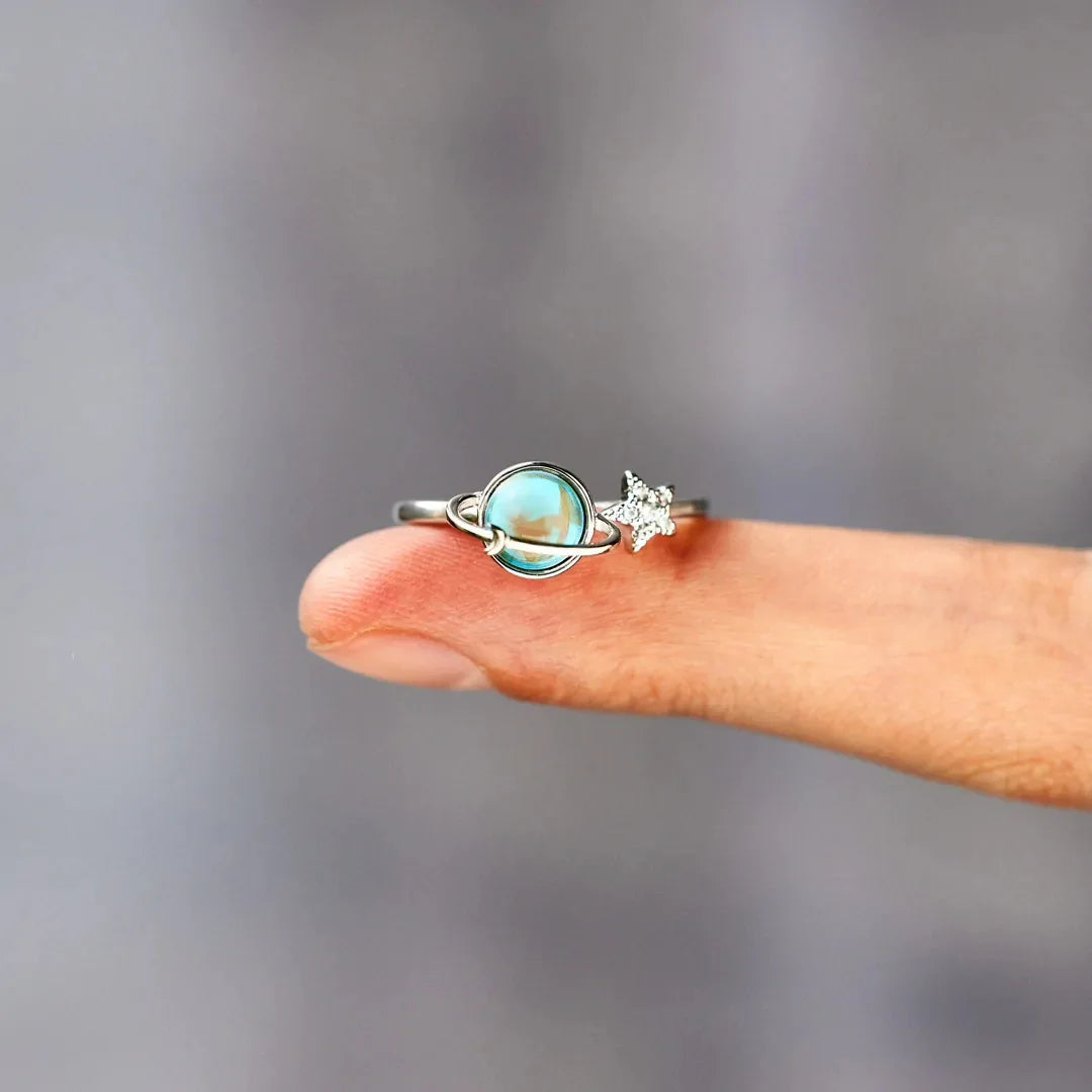 Our Saturn Ring is an exquisite 925 Sterling Silver piece that embodies the ethereal beauty of the cosmos. This unique ring features a mesmerizing blue gemstone, reminiscent of Saturn's enchanting glow, encircled by a delicate silver ring which rotates with a simple touch. Perfect for those who seek a touch of celestial charm, the Saturn Ring's elegance adds sophistication and wonder to any ensemble. To ensure its radiant sparkle endures, store it in a cool, dry place when not worn.
