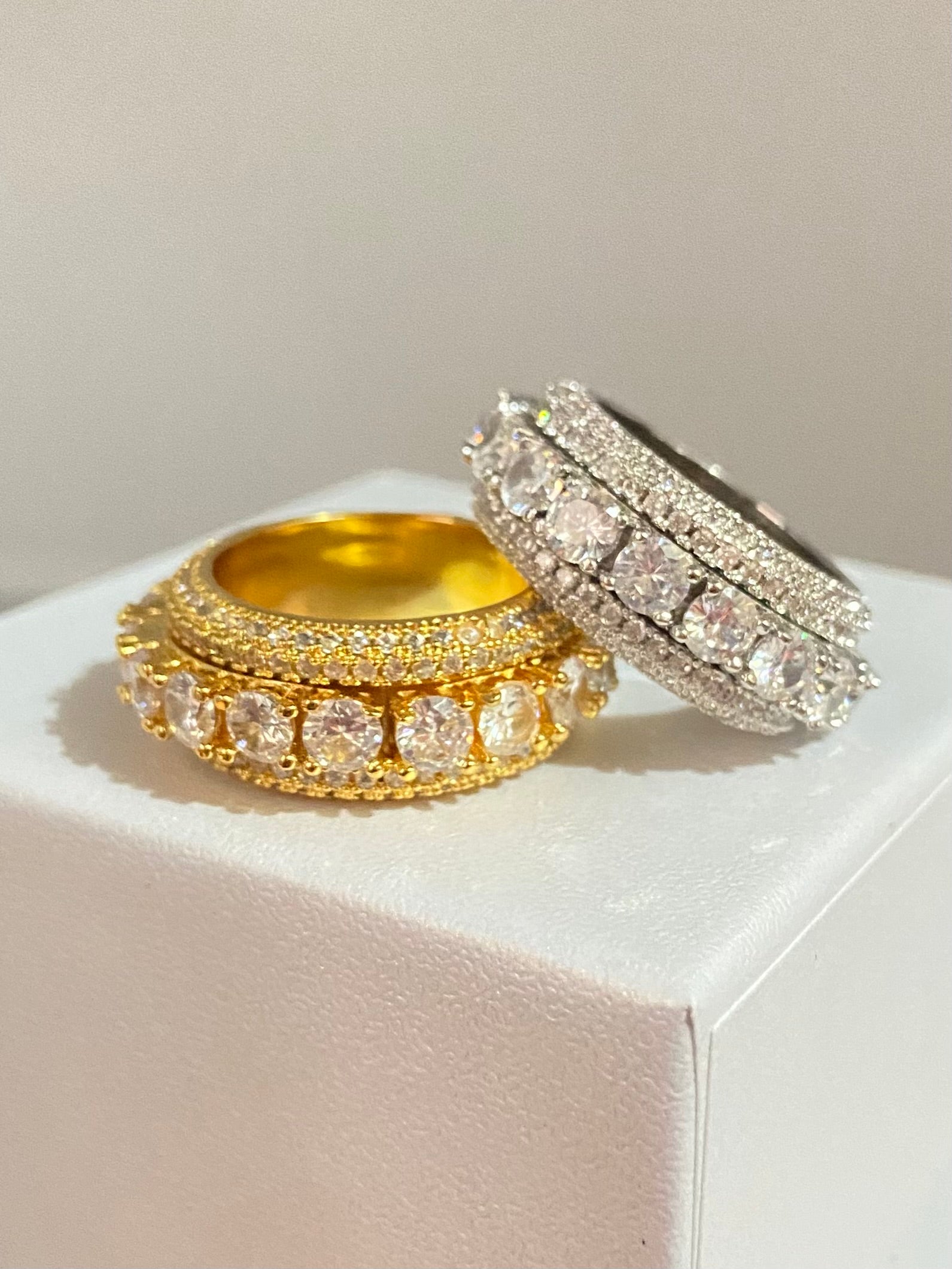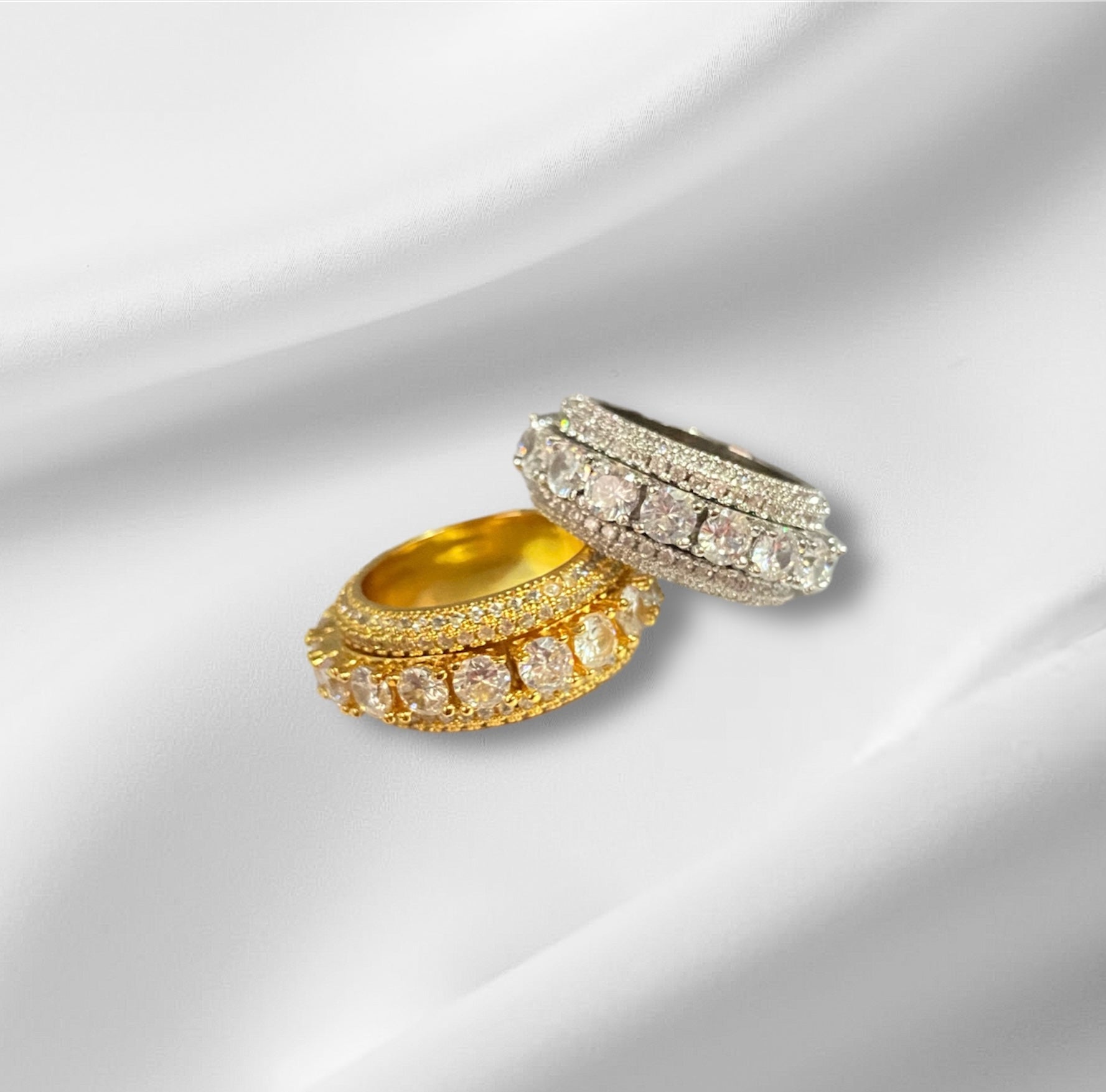 Introducing our Unisex Chunky Iced Out Ring – a striking accessory designed for those who love to stand out. This piece, offered in Silver and Gold options, is adorned with dazzling cubic zirconia stones, offering a brilliant shine. This ring's chunky style and rotating design make it perfect for fans of hip hop or punk fashion. Ideal for gifting, it makes the perfect present for birthdays, anniversaries, or other special occasions. To maintain its shine and intricate detailing, avoid exposure to water and harsh chemicals. Store it in a cool, dry place when not worn to preserve its beauty and ensure it remains a standout piece in your collection.